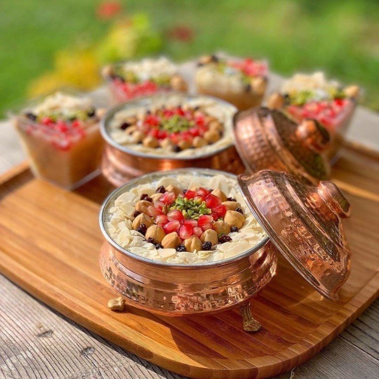 Piştikten sonra kaselere koyun. Üzerini ceviz, fındık, fıstık, nar taneleri ve tarçınla süsleyerek servis yapın.
