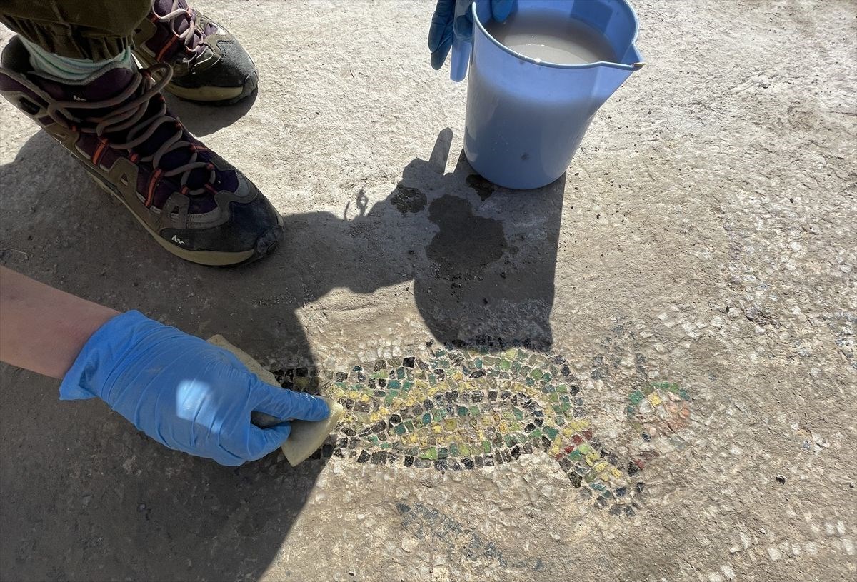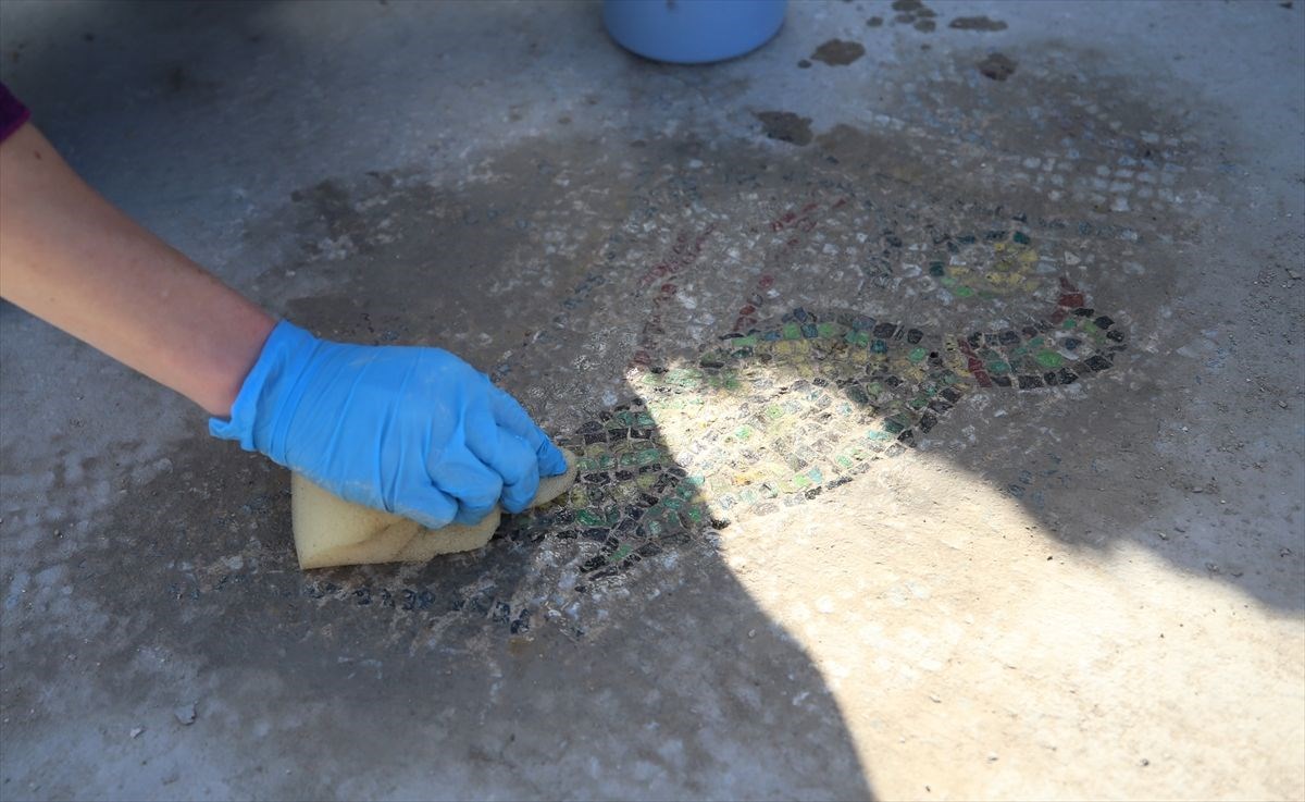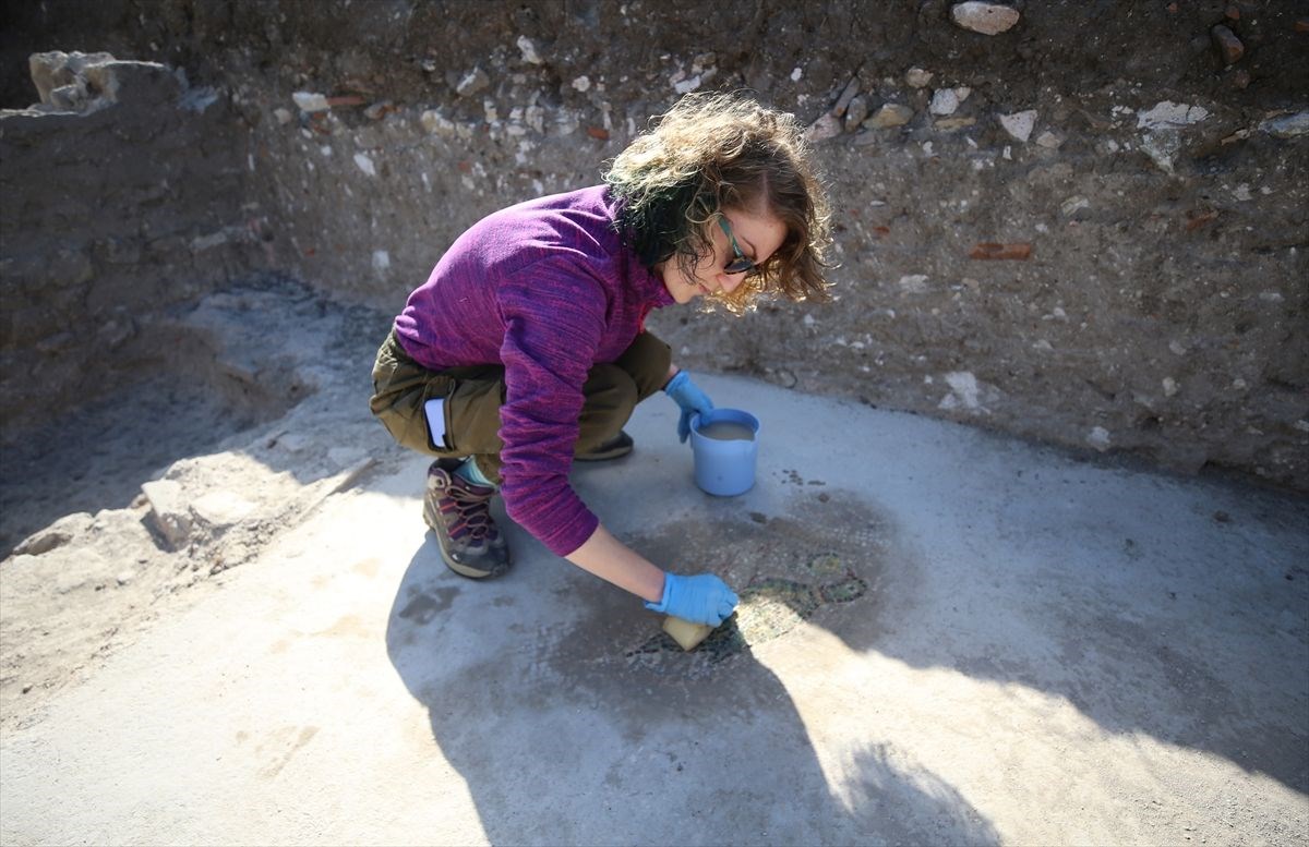 Çanakkale merkeze bağlı Tevfikiye köyünde yer alan, 5 bin 500 yıllık geçmişe sahip Troya Antik Kenti kazısı için dönüm noktası olacağı düşünülen zemin mozaiği gün ışığına çıkarıldı.