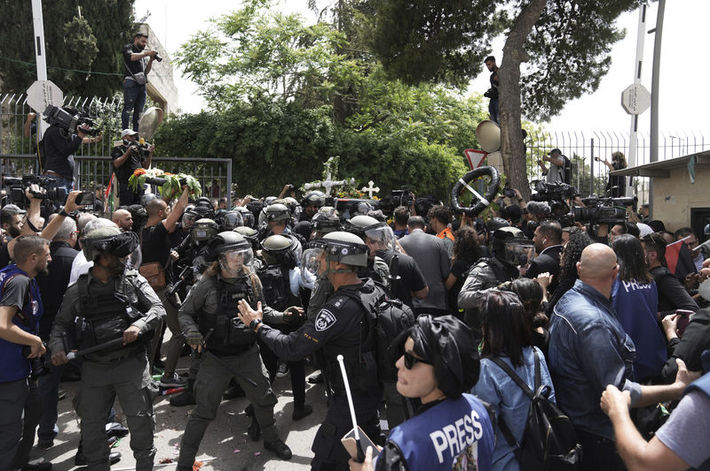 İsrail polisi, işgal altındaki Batı Şeria'nın Cenin kentindeki baskında İsrail askerlerince öldürülen Al Jazeera televizyonunun Filistinli kadın muhabiri Şirin Ebu Akile'nin naaşının omuzlarda taşınmasına izin vermeyerek cenazeye katılanlara cop, kauçuk kaplı mermi ve ses bombalarıyla müdahale etti.