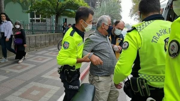 Kemalpaşa Mahallesi Adnan Menderes Bulvarı'nda trafik ekipleri, uygulama noktasında plakasız motosikleti durdurdu. Yapılan kontrollerde motosikletin çekme belgeli olduğu tespit edildi. Sürücü Cemalettin E.'ye bin 300 TL ceza uygulandı. Cezayı duyunca fenalaşan Cemalettin E., kaldırıma oturdu.