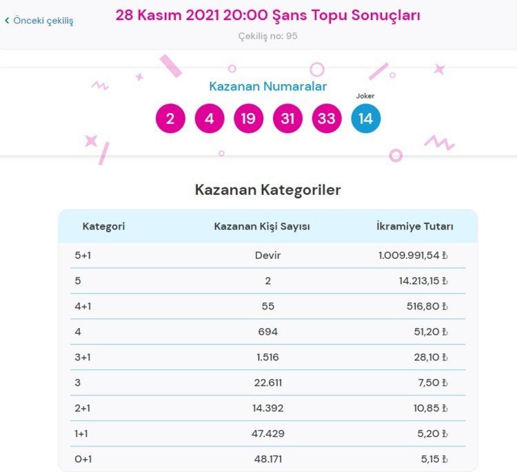 ŞANS TOPU SONUÇLARI AÇIKLANDI