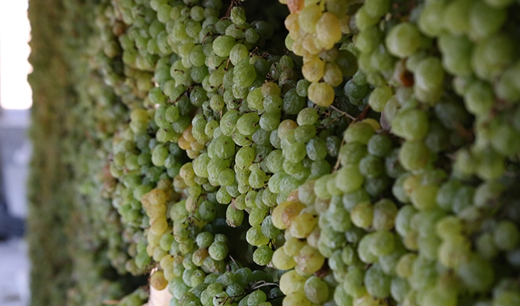 Konya'nın Orta Toroslardaki Hadim ilçesinde yetiştirilen, hasat sonunda evlerin tavan araları ve gölgede kurutularak tüketiciye ulaştırılan "gök üzüm" için üreticilerin mesaisi sürüyor.